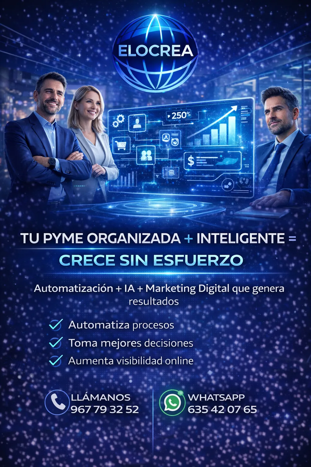 Especialista en automatización con IA aplicada a negocios reales. Lidera la estrategia de ELOCREA con el objetivo de ayudar a negocios a responder más rápido, calificar mejor y cerrar más ventas mediante sistemas inteligentes que trabajan 24/7.
